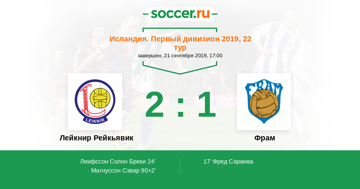 Лейкнир Рейкьявик - Фрам: обзор матча 21 сентября 2019