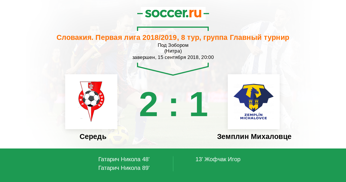 Середь - Земплин Михаловце: обзор матча 15 сентября 2018