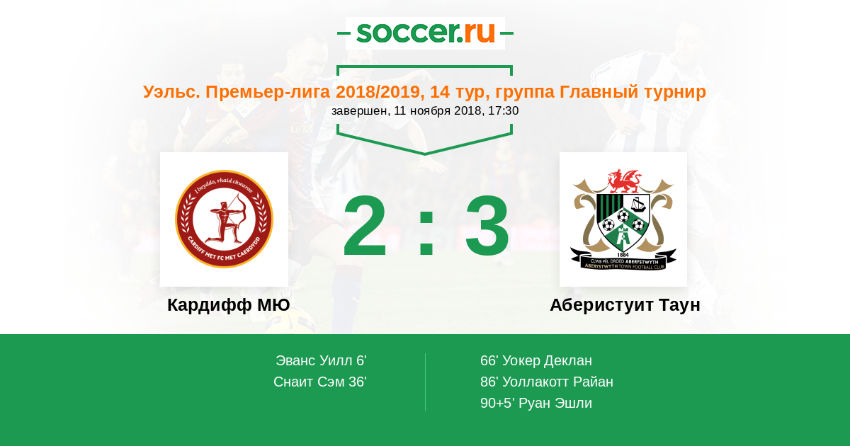 Кардифф МЮ - Аберистуит Таун: обзор матча 11 ноября 2018