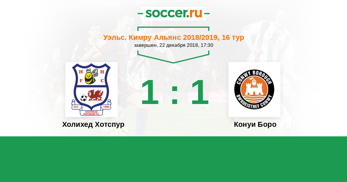 Холихед Хотспур - Конуи Боро: обзор матча 22 декабря 2018