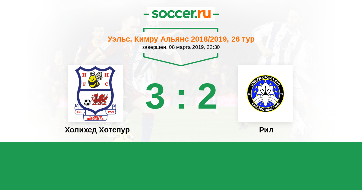 Холихед Хотспур - Рил: обзор матча 8 марта 2019