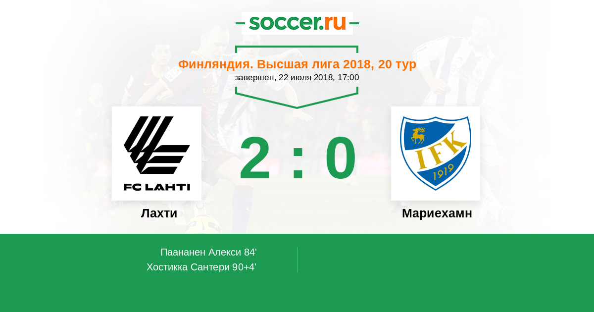 Лахти - Мариехамн: обзор матча 22 июля 2018