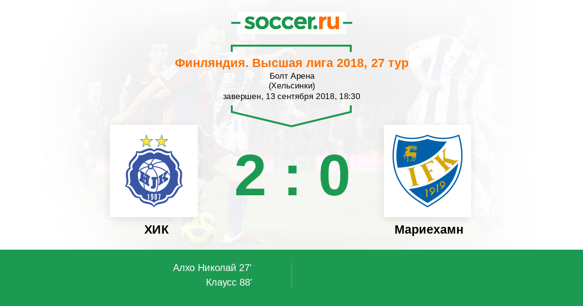 ХИК - Мариехамн: обзор матча 13 сентября 2018