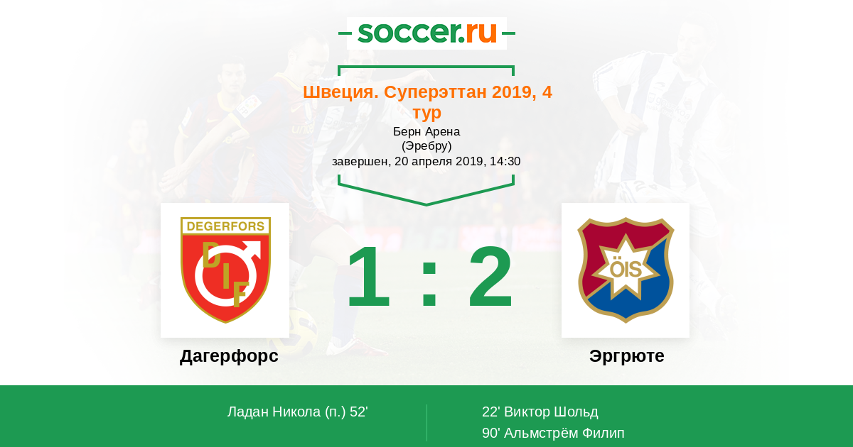 Дагерфорс - Эргрюте: обзор матча 20 апреля 2019