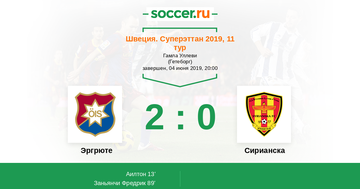 Эргрюте - Сирианска: обзор матча 4 июня 2019