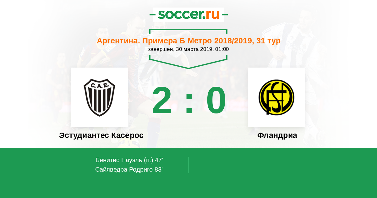 Эстудиантес Касерос - Фландриа: обзор матча 30 марта 2019