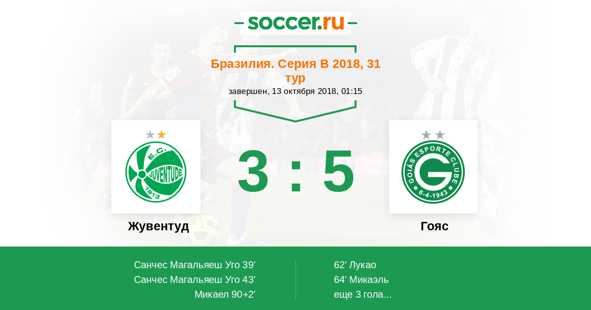 Жувентуд - Гояс: обзор матча 13 октября 2018