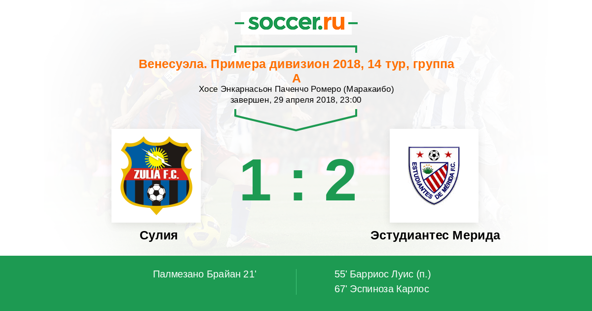 Сулия - Эстудиантес Мерида: обзор матча 29 апреля 2018