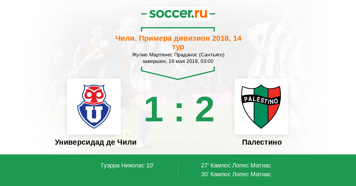 Универсидад де Чили - Палестино: обзор матча 19 мая 2018