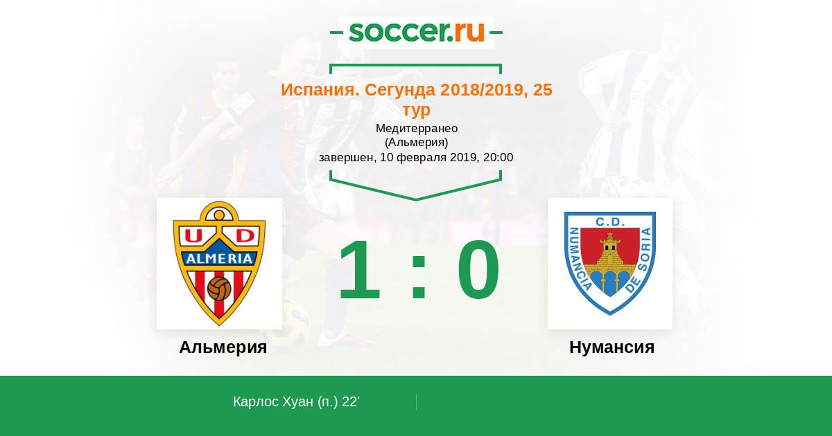 Альмерия - Нумансия: обзор матча 10 февраля 2019