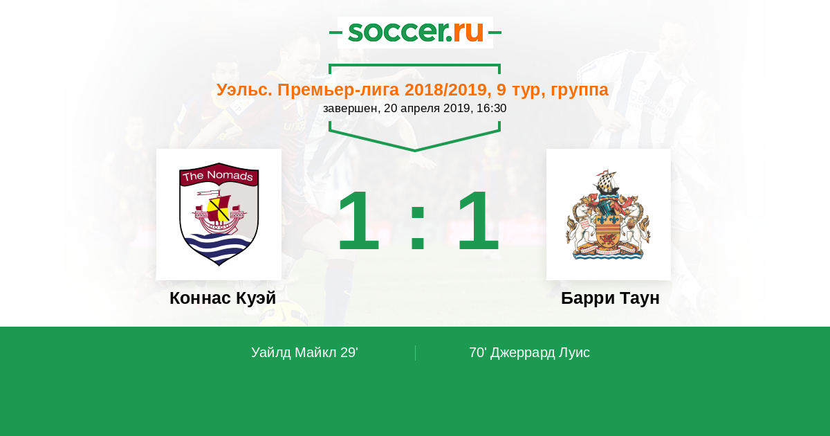 Коннас Куэй - Барри Таун: обзор матча 20 апреля 2019