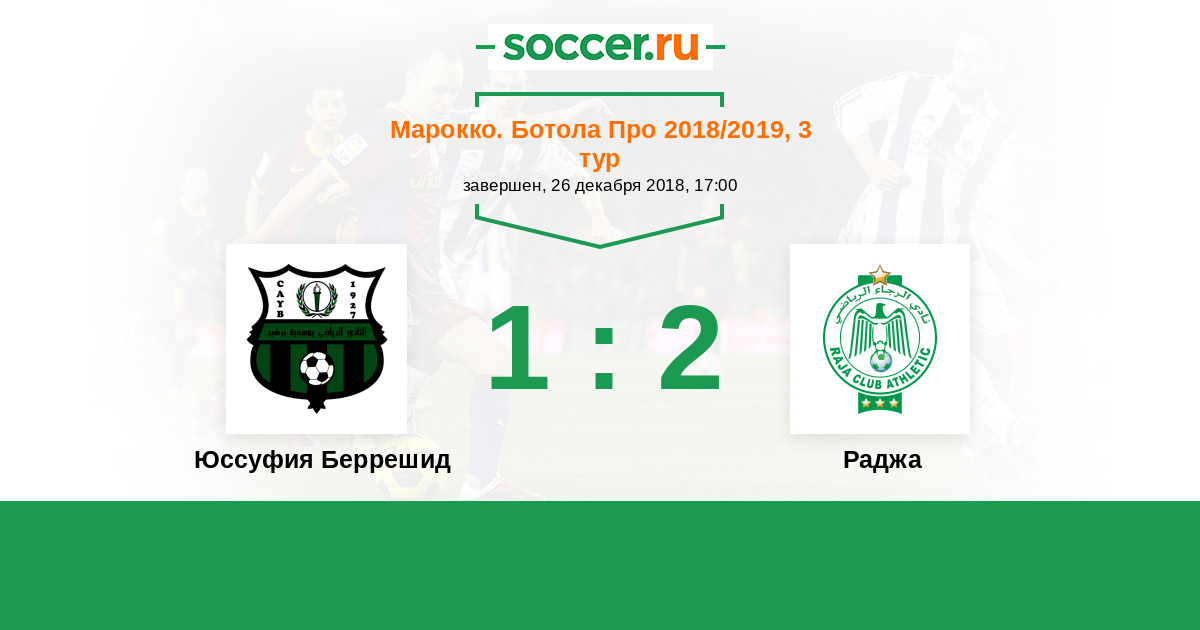 Юссуфия Беррешид - Раджа: обзор матча 26 декабря 2018