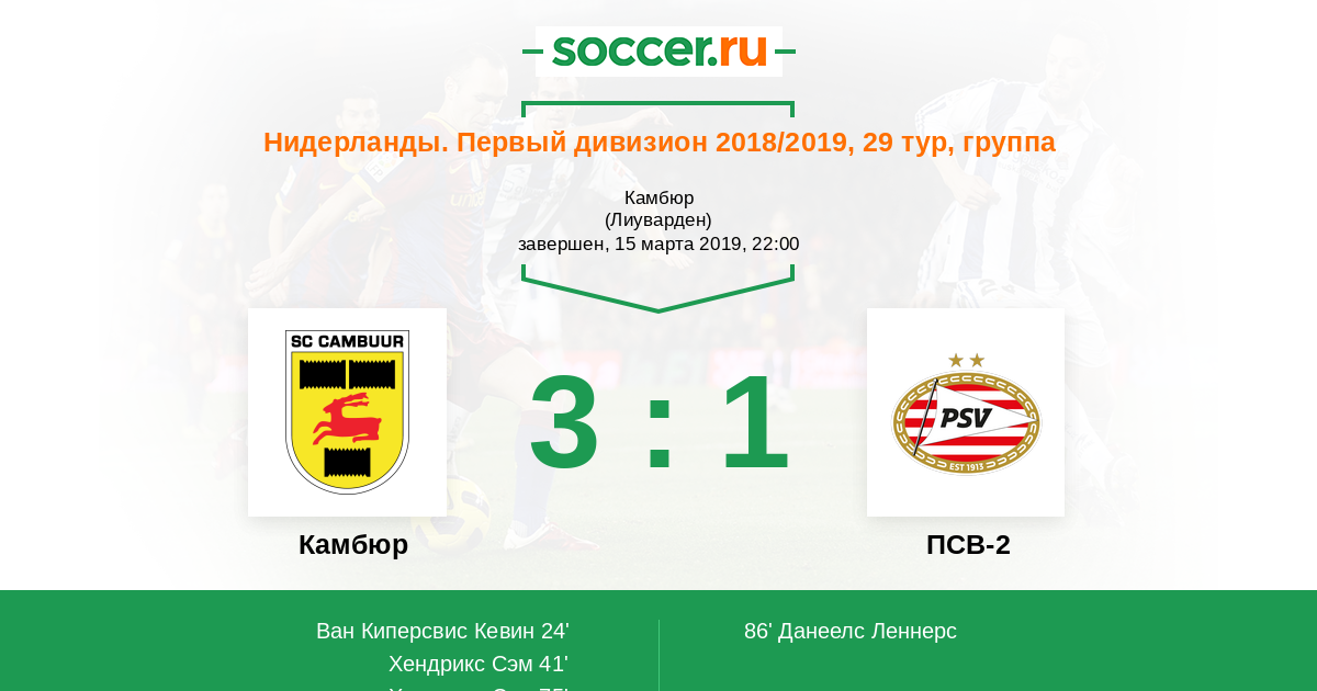 Камбюр - ПСВ-2: обзор матча 15 марта 2019