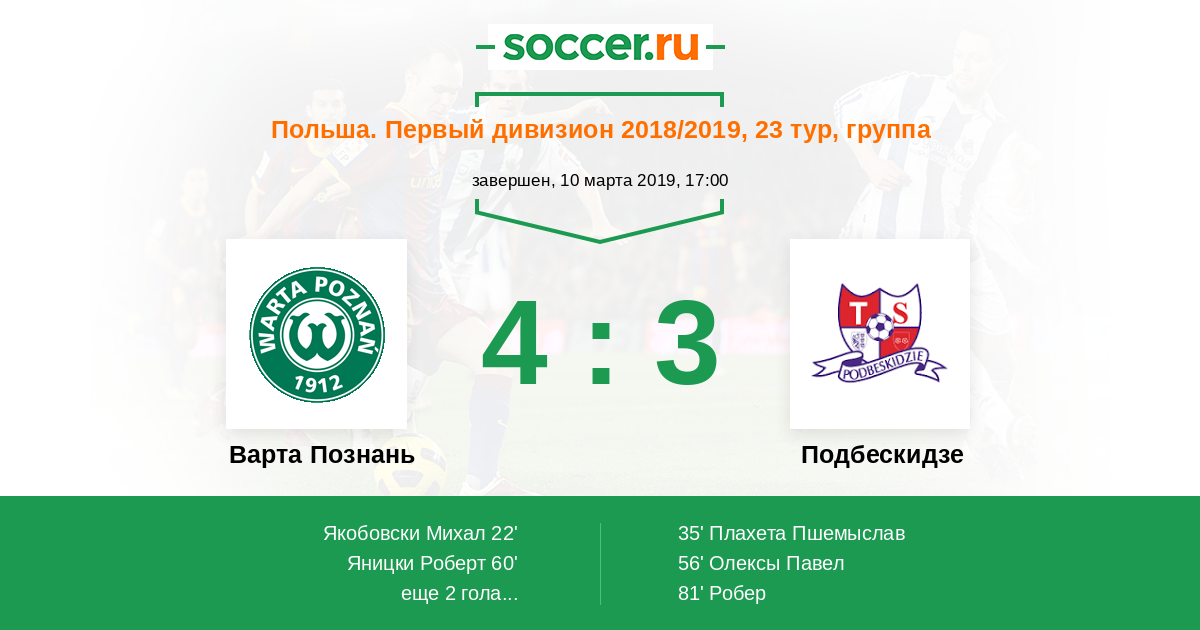 Варта Познань - Подбескидзе: обзор матча 10 марта 2019