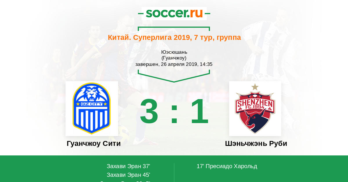 Гуанчжоу Эв | 30 | 23 | 3 | 4 | 14 | 68:24 | 72 |