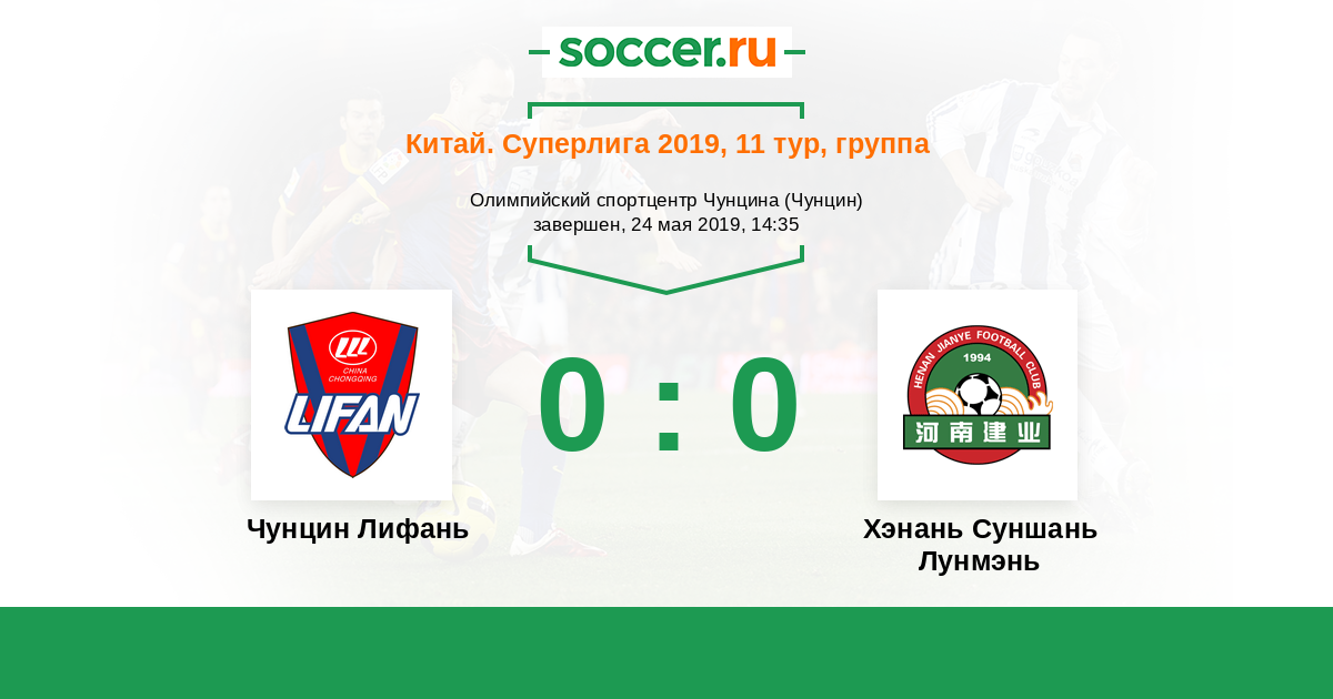 Чунцин Лифань - Хэнань Суншань Лунмэнь: обзор матча 24 мая 2019
