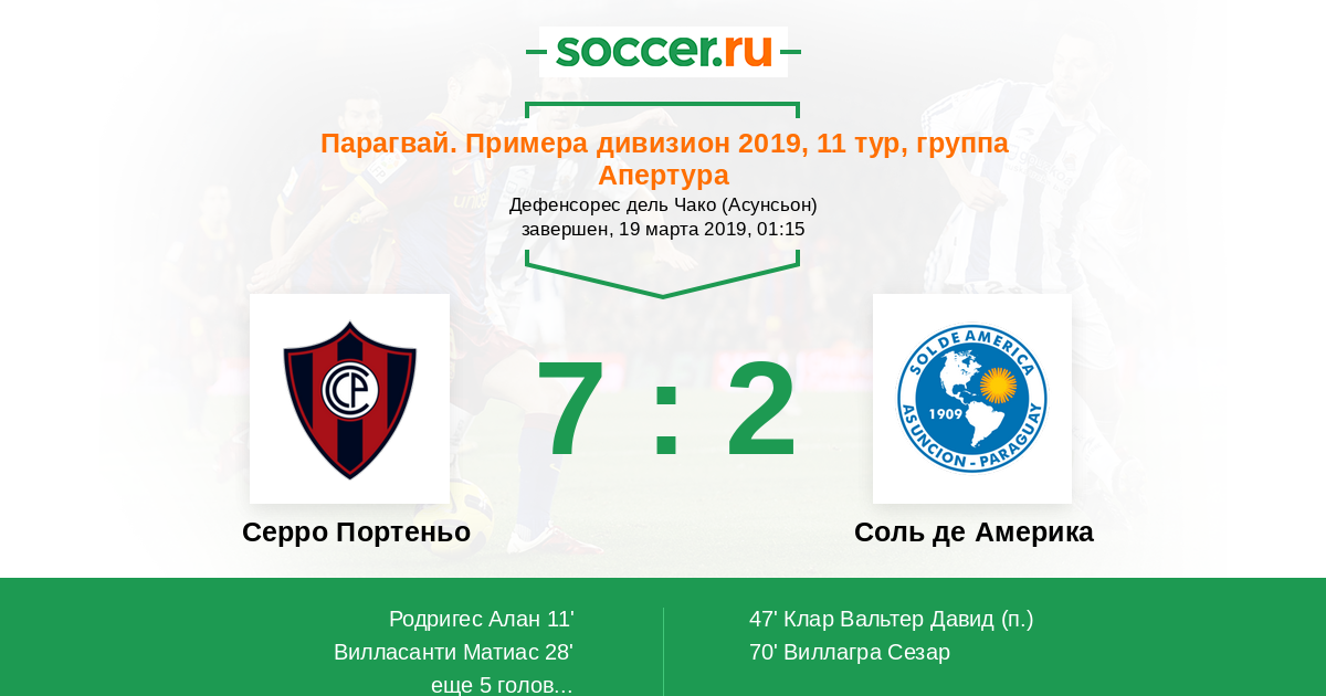 Серро Портеньо - Соль де Америка: обзор матча 19 марта 2019