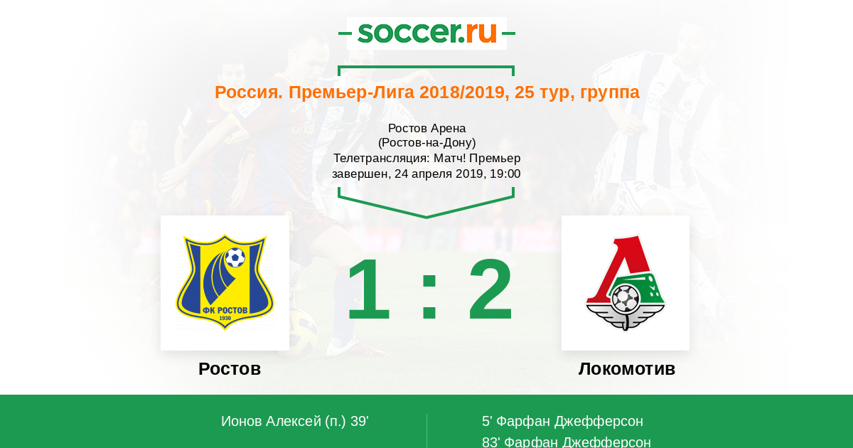 Ростов - Локомотив турнирная таблица