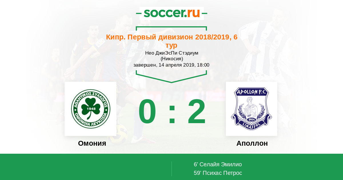 Омония - Аполлон: обзор матча 14 апреля 2019