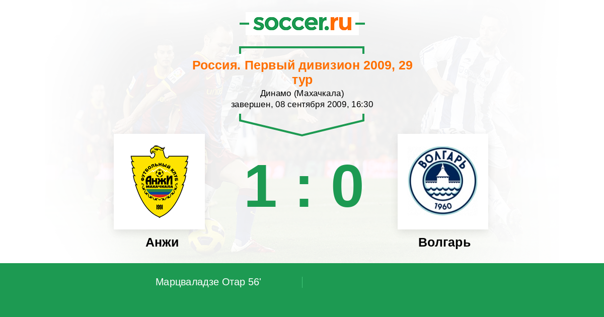 Анжи - Волгарь-Газпром-2: обзор матча 8 сентября 2009