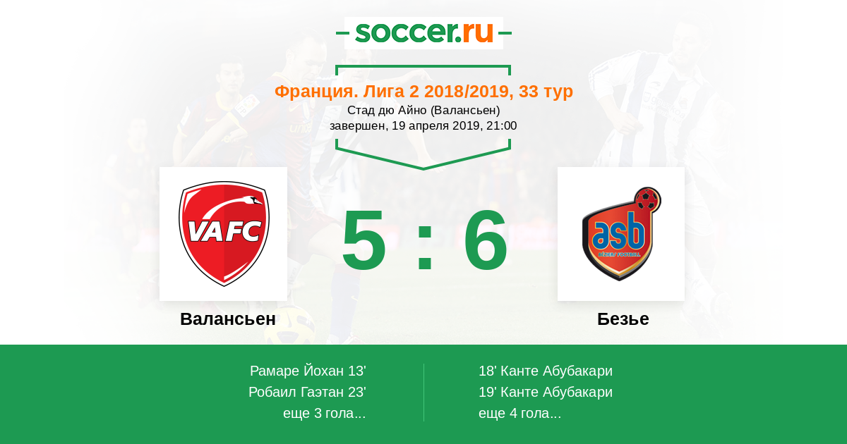 Валансьен - Безье: обзор матча 19 апреля 2019