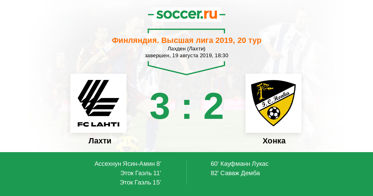 Лахти - Хонка: обзор матча 19 августа 2019