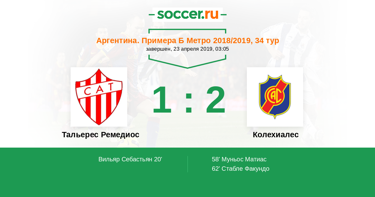Тальерес Ремедиос - Колехиалес: обзор матча 23 апреля 2019