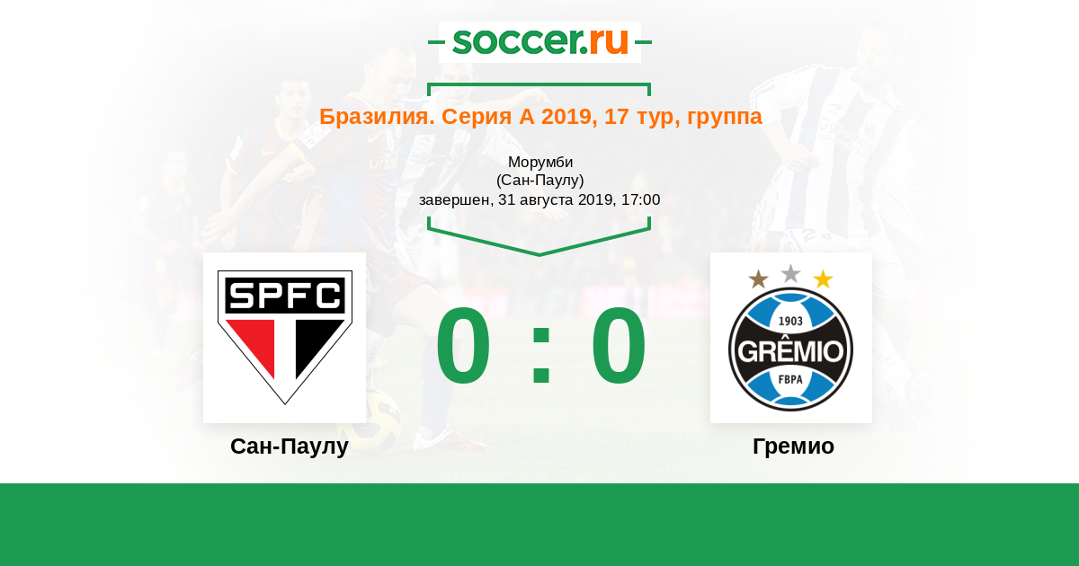 Сан-Паулу - Гремио: обзор матча 31 августа 2019