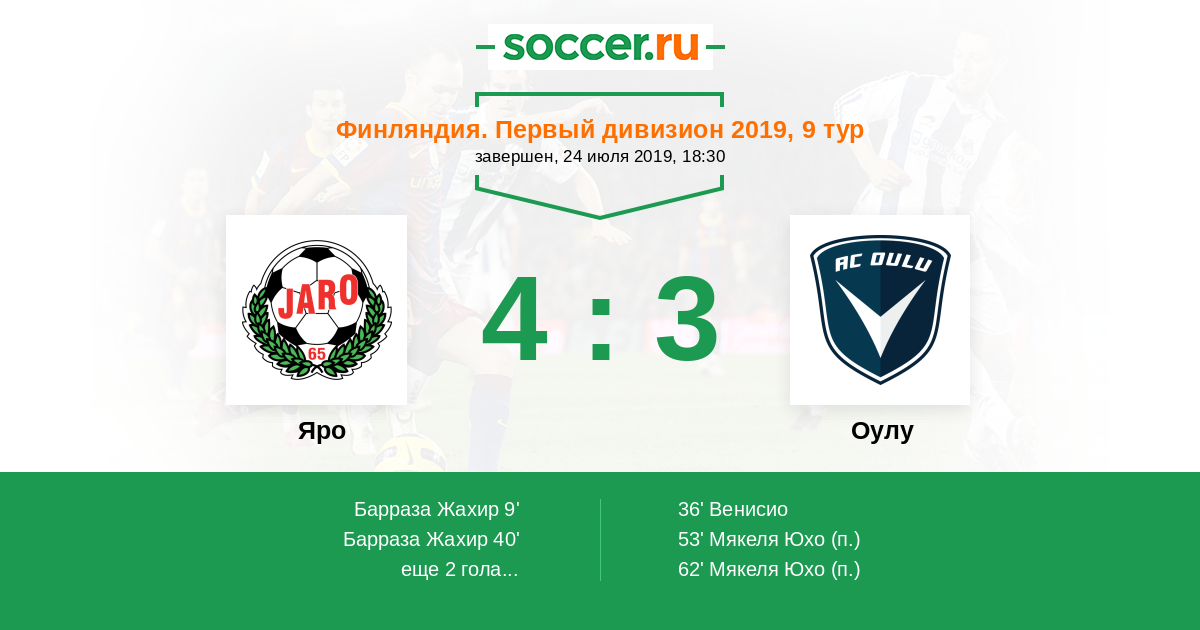 Яро - Оулу: обзор матча 24 июля 2019