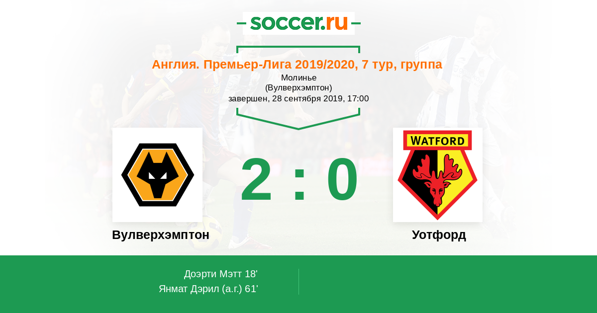Вулверхэмптон - Уотфорд: обзор матча 28 сентября 2019