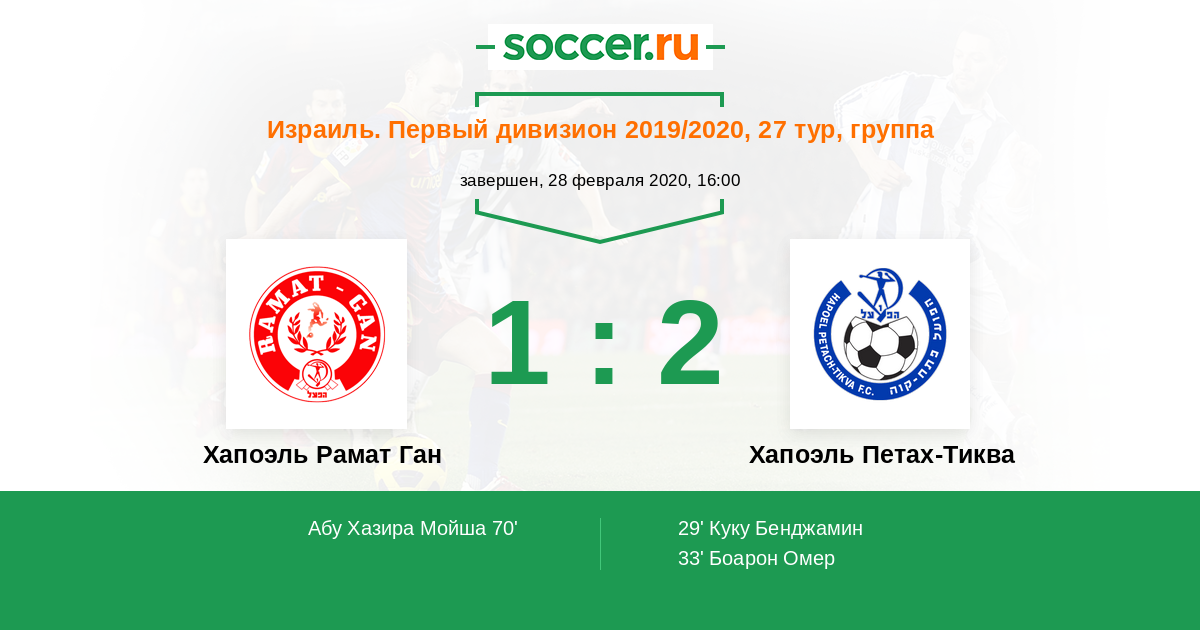 Хапоэль Рамат Ган - Хапоэль Петах-Тиква: обзор матча 28 февраля 2020