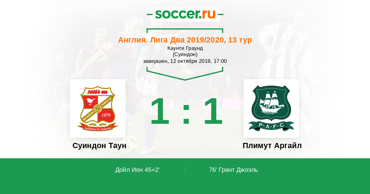 Суиндон Таун - Плимут Аргайл: обзор матча 12 октября 2019