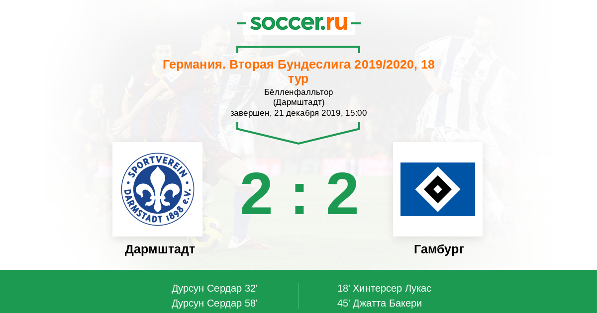 Дармштадт - Гамбург: обзор матча 21 декабря 2019