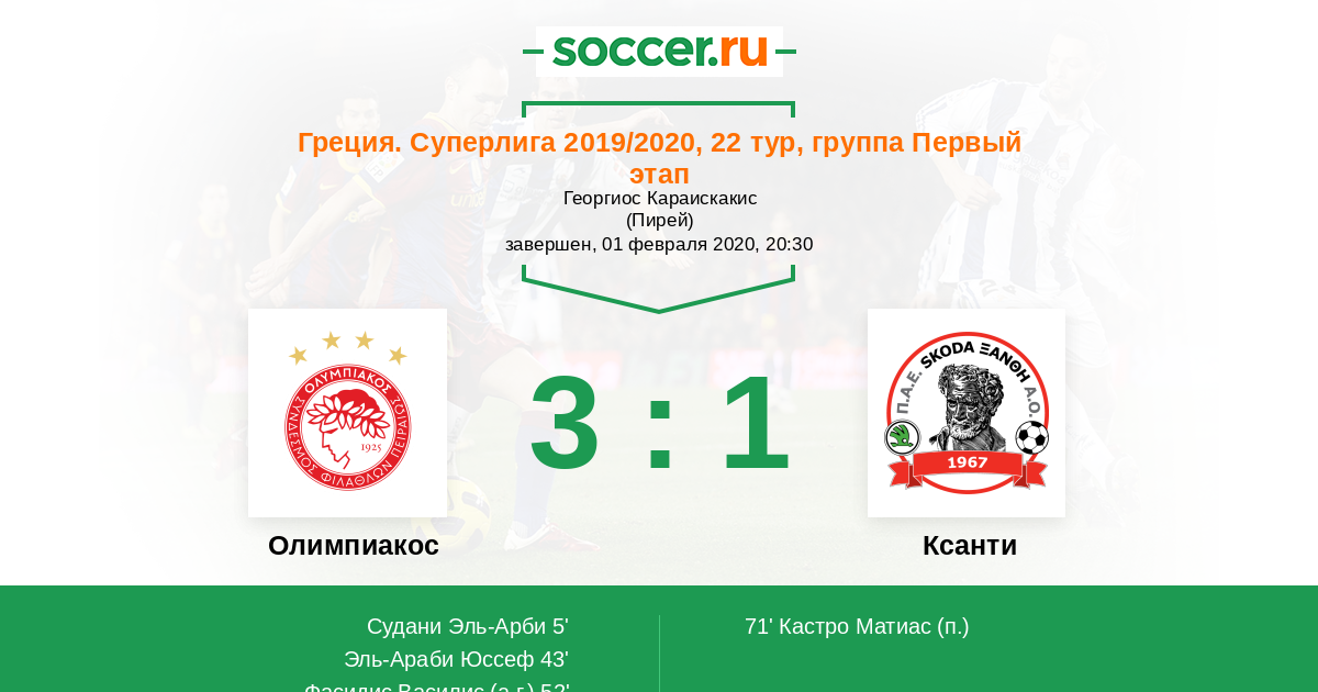 Олимпиакос - Ксанти: обзор матча 1 февраля 2020