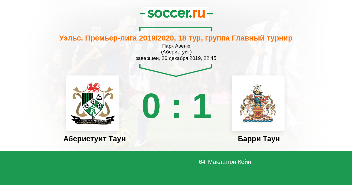 Аберистуит Таун - Барри Таун: обзор матча 20 декабря 2019