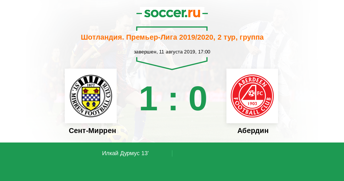 Сент-Миррен - Абердин: обзор матча 11 августа 2019