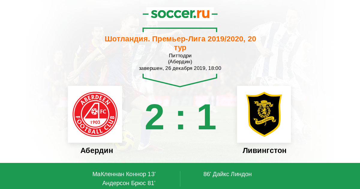 Абердин - Ливингстон: обзор матча 26 декабря 2019