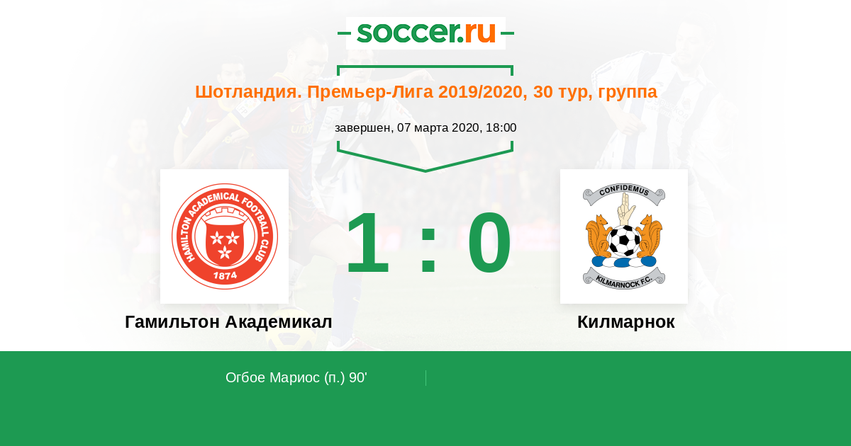 Гамильтон Академикал - Килмарнок: обзор матча 7 марта 2020