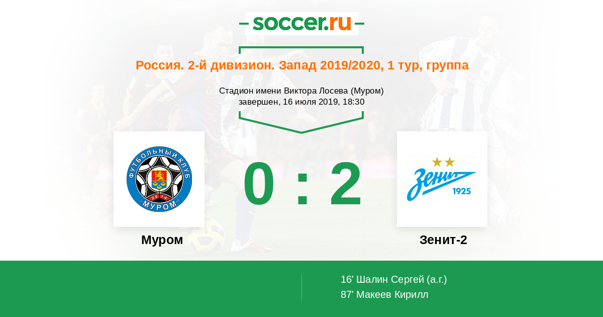 Муром - Зенит-2: обзор матча 16 июля 2019