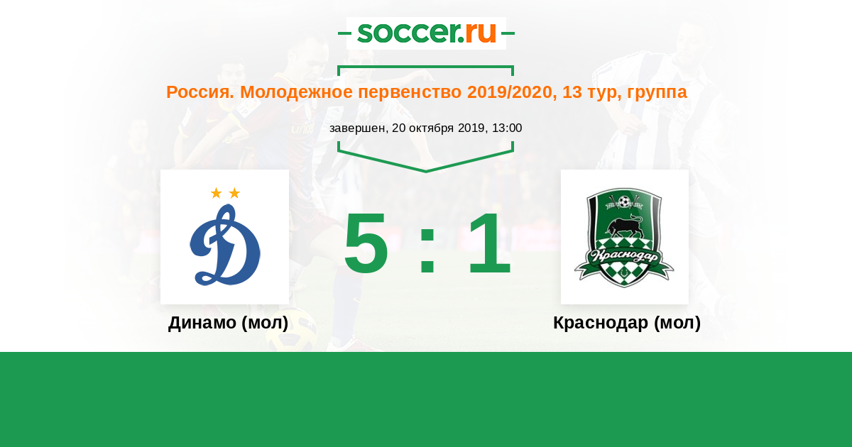 Динамо (мол) - Краснодар (мол): обзор матча 20 октября 2019