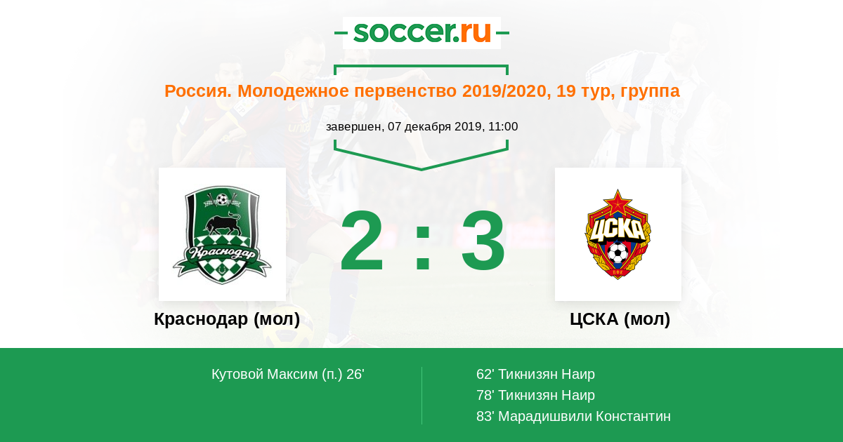 Краснодар (мол) - ЦСКА (мол): обзор матча 7 декабря 2019