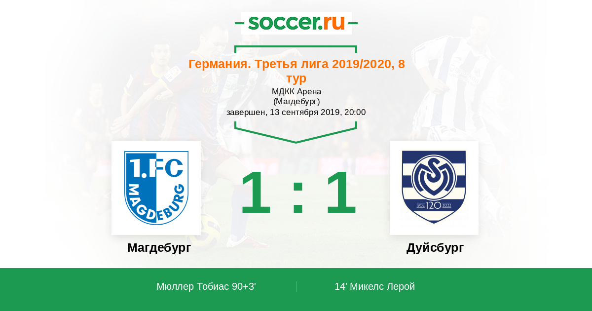 Магдебург - Дуйсбург: обзор матча 13 сентября 2019