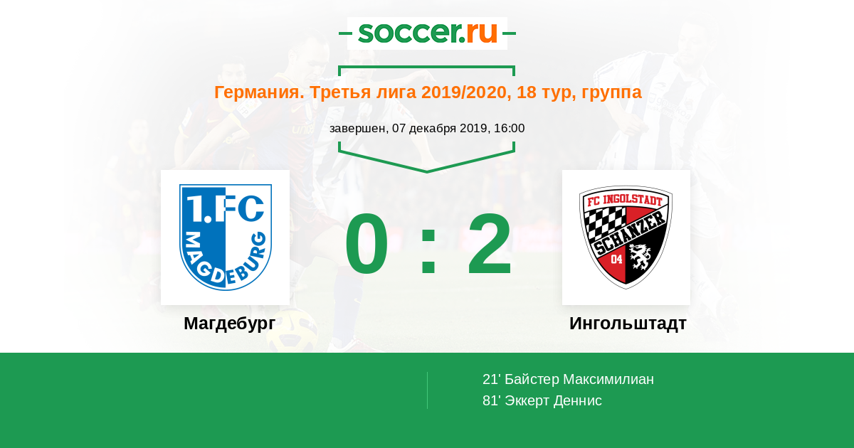 Магдебург - Ингольштадт: обзор матча 7 декабря 2019