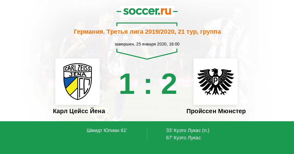 Карл Цейсс Йена - Пройcсен Мюнстер: обзор матча 25 января 2020