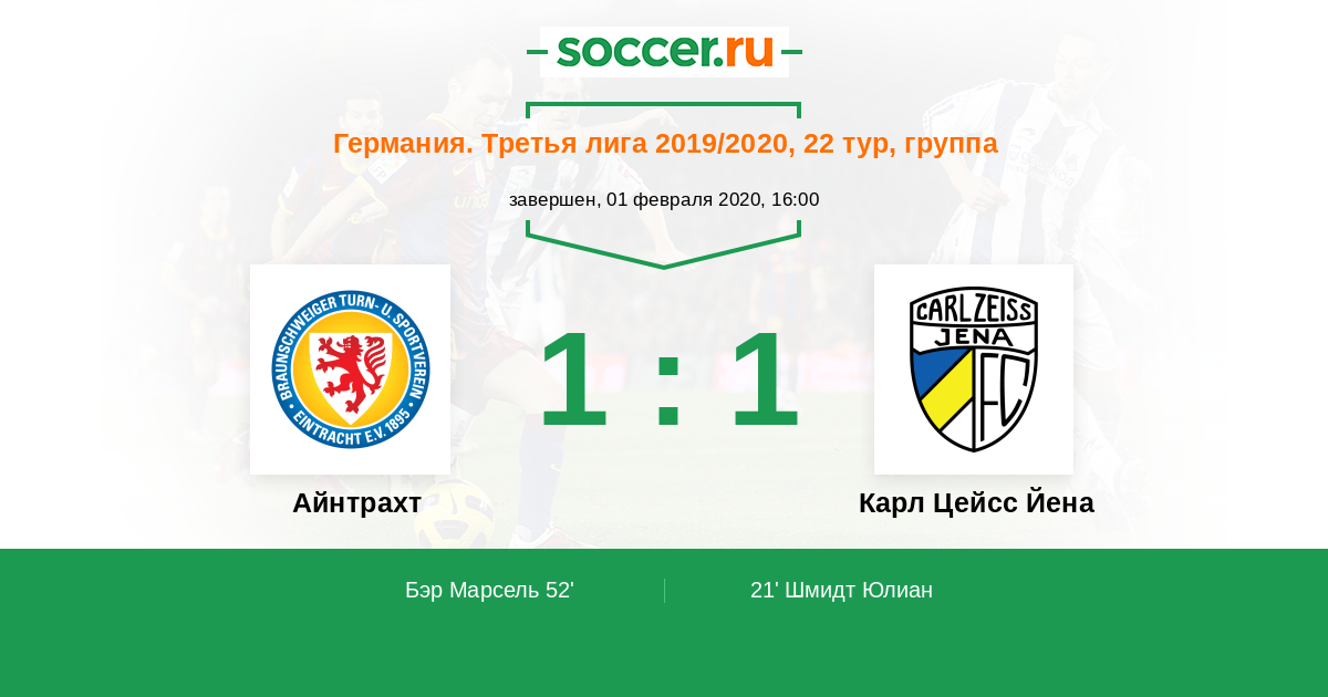 Айнтрахт - Карл Цейсс Йена: обзор матча 1 февраля 2020