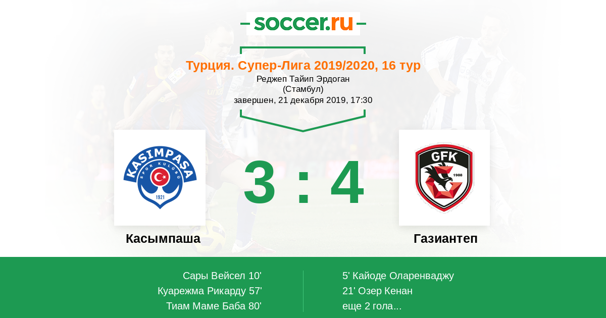 Касымпаша - Газиантеп: обзор матча 21 декабря 2019