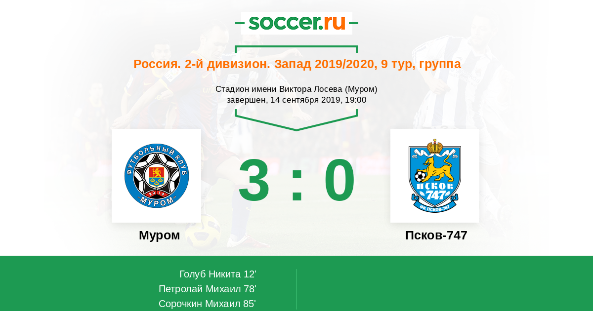 Муром - Псков-747: обзор матча 14 сентября 2019