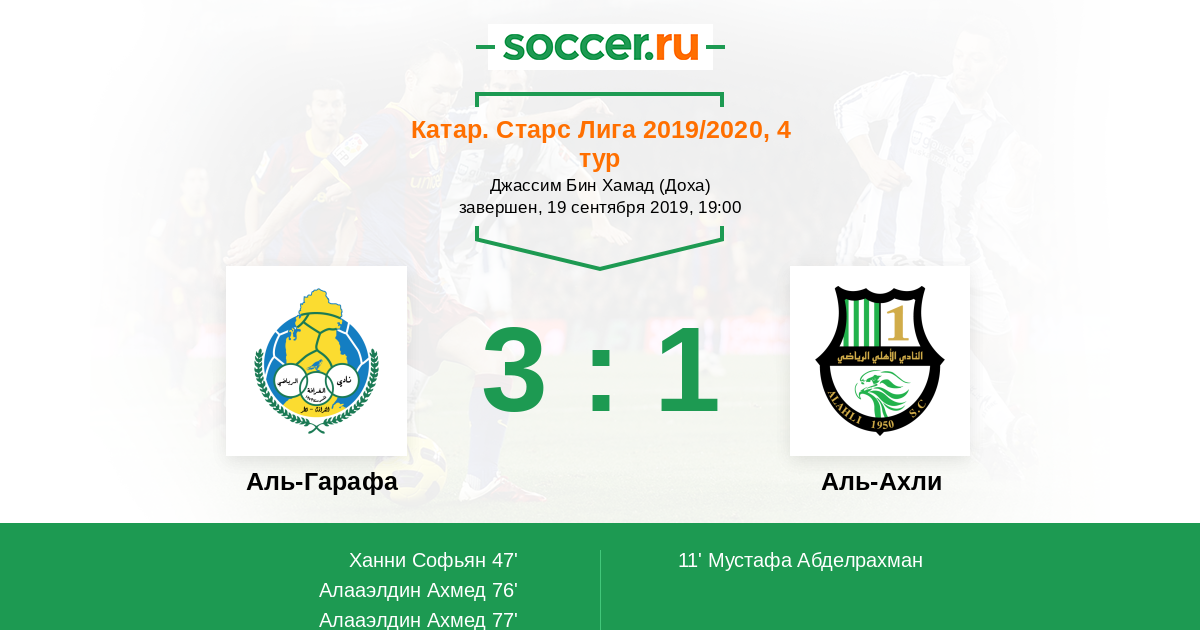 | 4. | Аль-Гарафа | 22 | 10 | 6 | 6 | 7 | 34:29 | 36 |