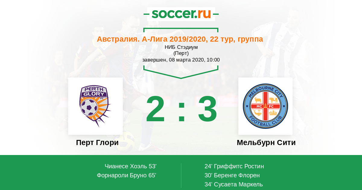 Перт Глори - Мельбурн Сити: обзор матча 8 марта 2020