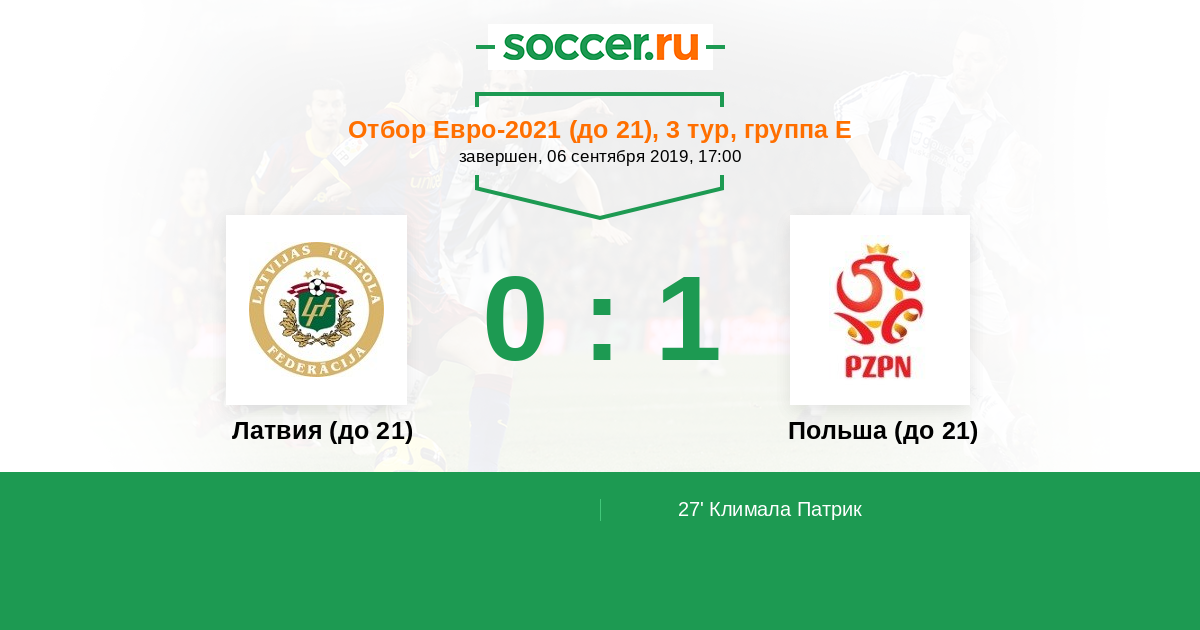 Польша до 21 | 10 | 6 | 2 | 2 | 5 | 19:8 | 20 |